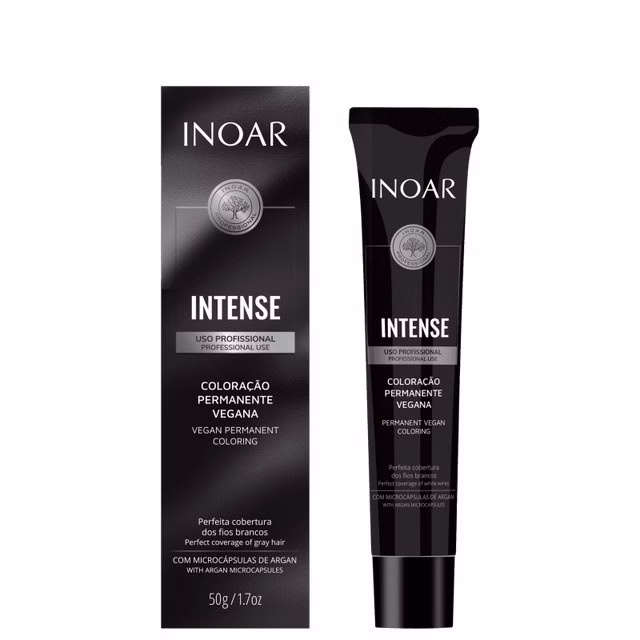 A Coloração Inoar Intense conta com microcápsulas de Óleo de Argan que proporcionam hidratação e brilho intensos, fios mais luminosos e naturais.