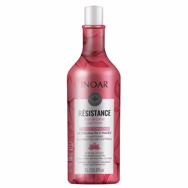 Condicionador Inoar Résistance Flor de Lótus restaura e possui alto poder hidratante, além de facilitar o pentear. Ideal para quem deseja um cabelo saudável.