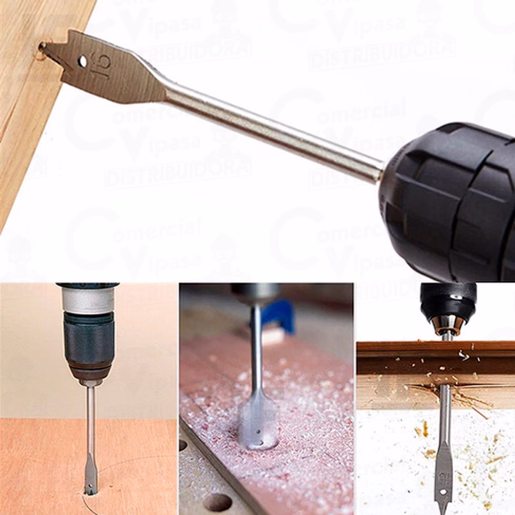 Variedade de Tamanhos: O conjunto inclui várias brocas chatas de diferentes tamanhos, permitindo perfurar orifícios de diâmetros variados. Essa variedade proporciona versatilidade para diferentes projetos e requisitos de tamanho de furo.