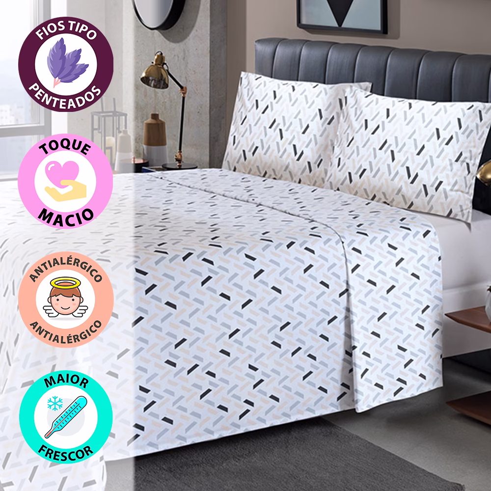 Transforme a sua cama em um verdadeiro refúgio de conforto e bem-estar com esse Jogo de Cama. Confeccionado com tecido 100 algodão, com percal de 130 fios, oferece um toque agradável e macio, além de ser resistente e com maior frescor.