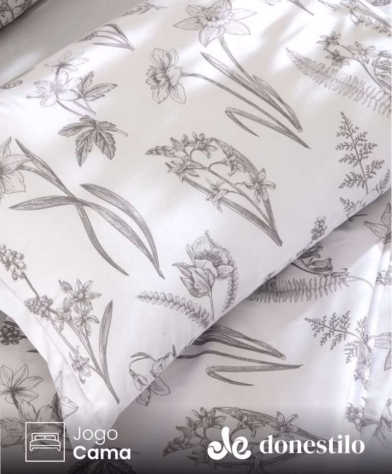 Jogo de Cama Casal 4 peças Döhler Flora é a escolha perfeita para quem busca conforto e elegância. Feito com 100% algodão e gramatura de 90 g/m², seu tecido de 150 fios garante um toque suave e agradável. Além disso, é produzido com estamparia digital de alta qualidade, em um processo sustentável que preserva os recursos naturais. Sua estampa apresenta um padrão floral delicado, com flores e folhagens em tons suaves sobre um fundo branco. Essa composição confere ao ambiente uma atmosfera romântica e elegante.