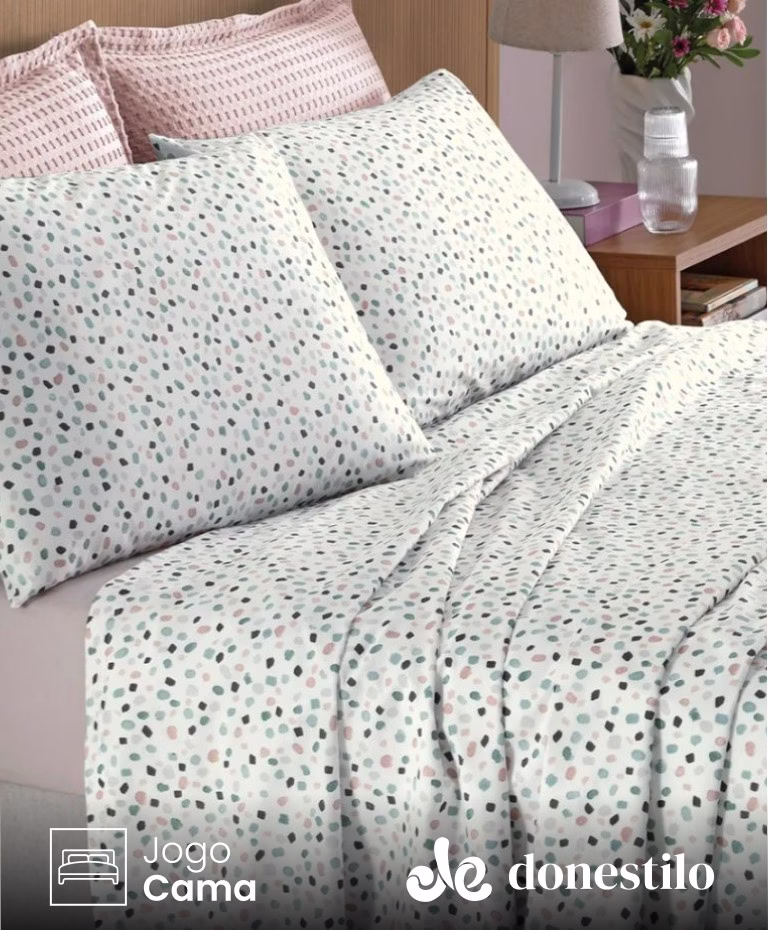 Jogo de Cama Casal 4 peças Döhler Serena é ideal para quem valoriza conforto, qualidade e estilo no quarto. Produzido em 100% algodão, com gramatura de 115 g/m² e 150 fios, proporciona maciez e durabilidade. A estampa é delicada, trazendo um design agradável para noites tranquilas e relaxantes.