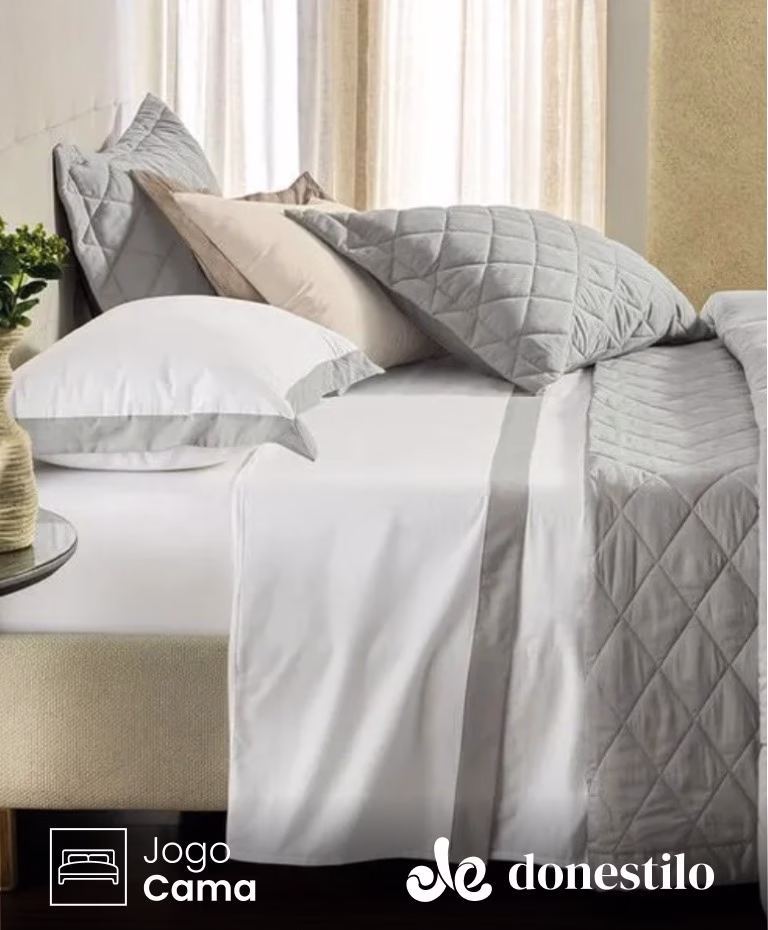 1 Sobre Lençol; 1 Lençol com Elástico; 2 Fronhas
