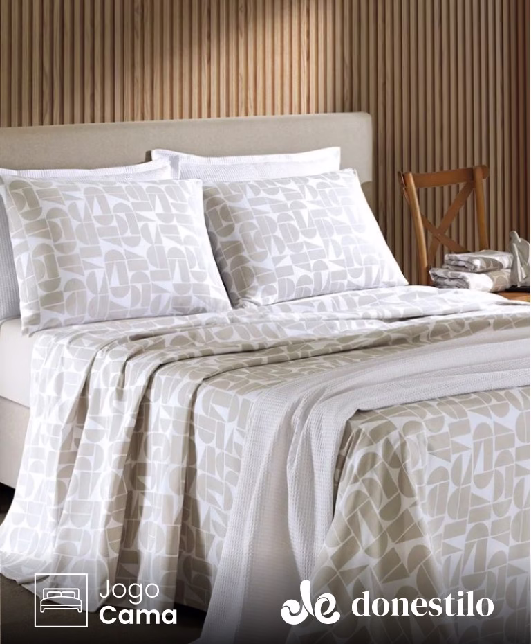 Jogo de Cama King 4 peças Döhler Petra é a escolha perfeita para quem busca conforto e elegância. Feito com 100% algodão e gramatura de 100 g/m², seu tecido de 130 fios garante um toque suave e agradável. Além disso, é produzido com estamparia digital de alta qualidade, em um processo sustentável que preserva os recursos naturais. Sua estampa moderna e minimalista, com cores neutras que conferem elegância e sofisticação.