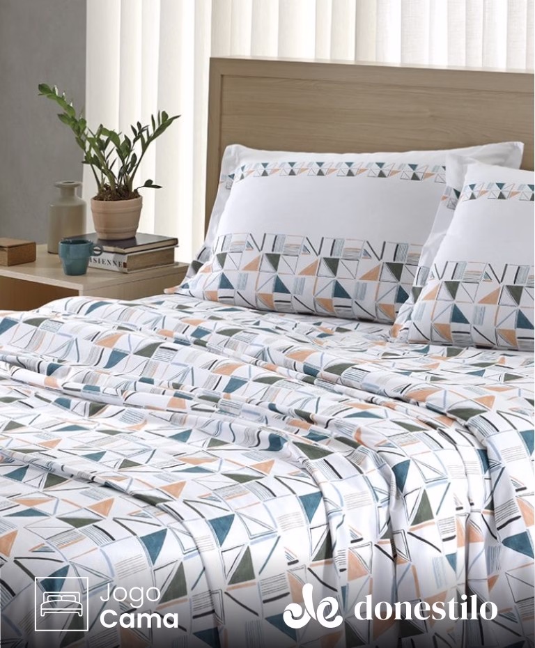 Jogo de Cama Queen Döhler Sara 4 peças em 100% algodão penteado, 150 fios e gramatura de 90 g/m². Toque macio, estampa digital e produção sustentável.