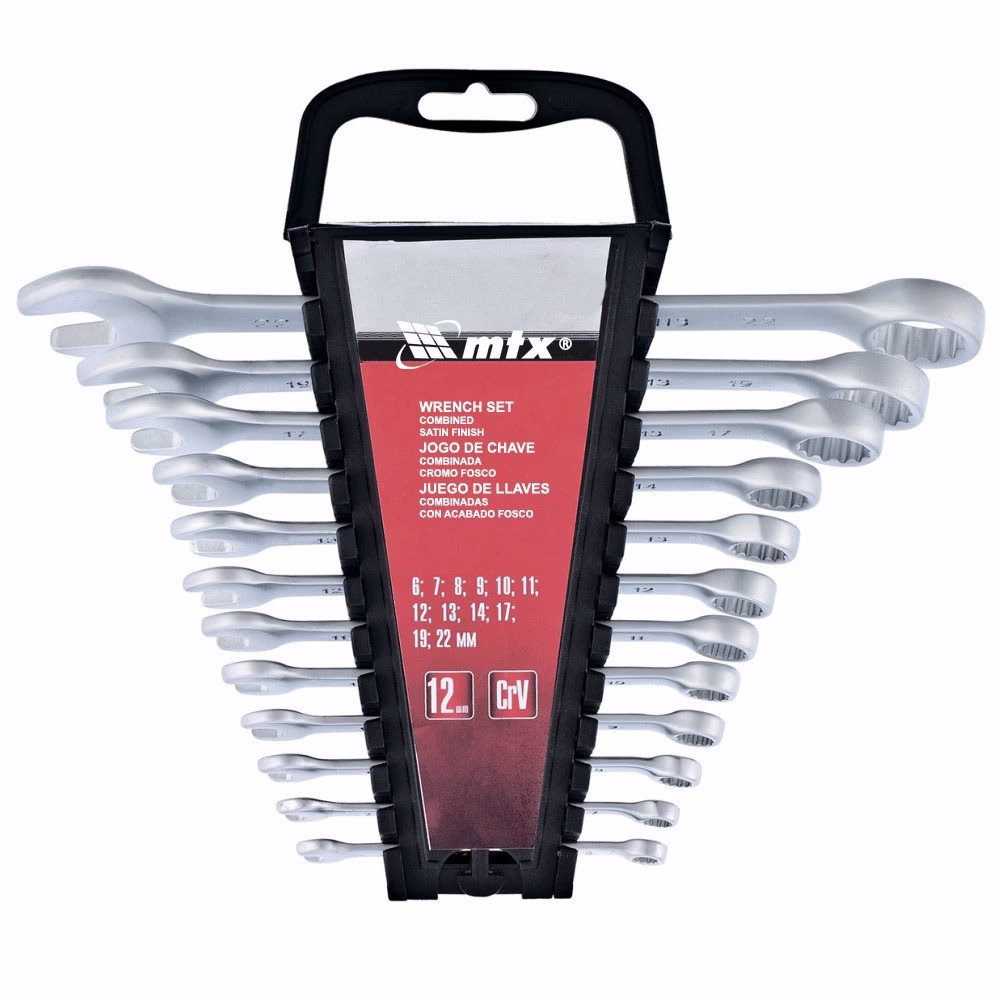 Jogo de chave combinada de 6 a 22 mm aço cromo vanádio com 12 peças – MTX