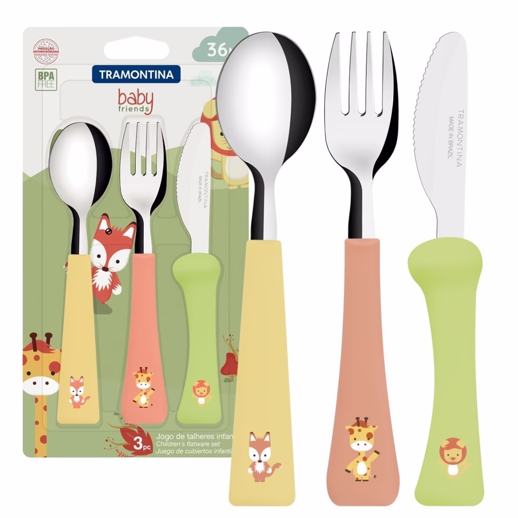 JOGO DE TALHERES 3 PCS BABY FRIENDS COLORIDO