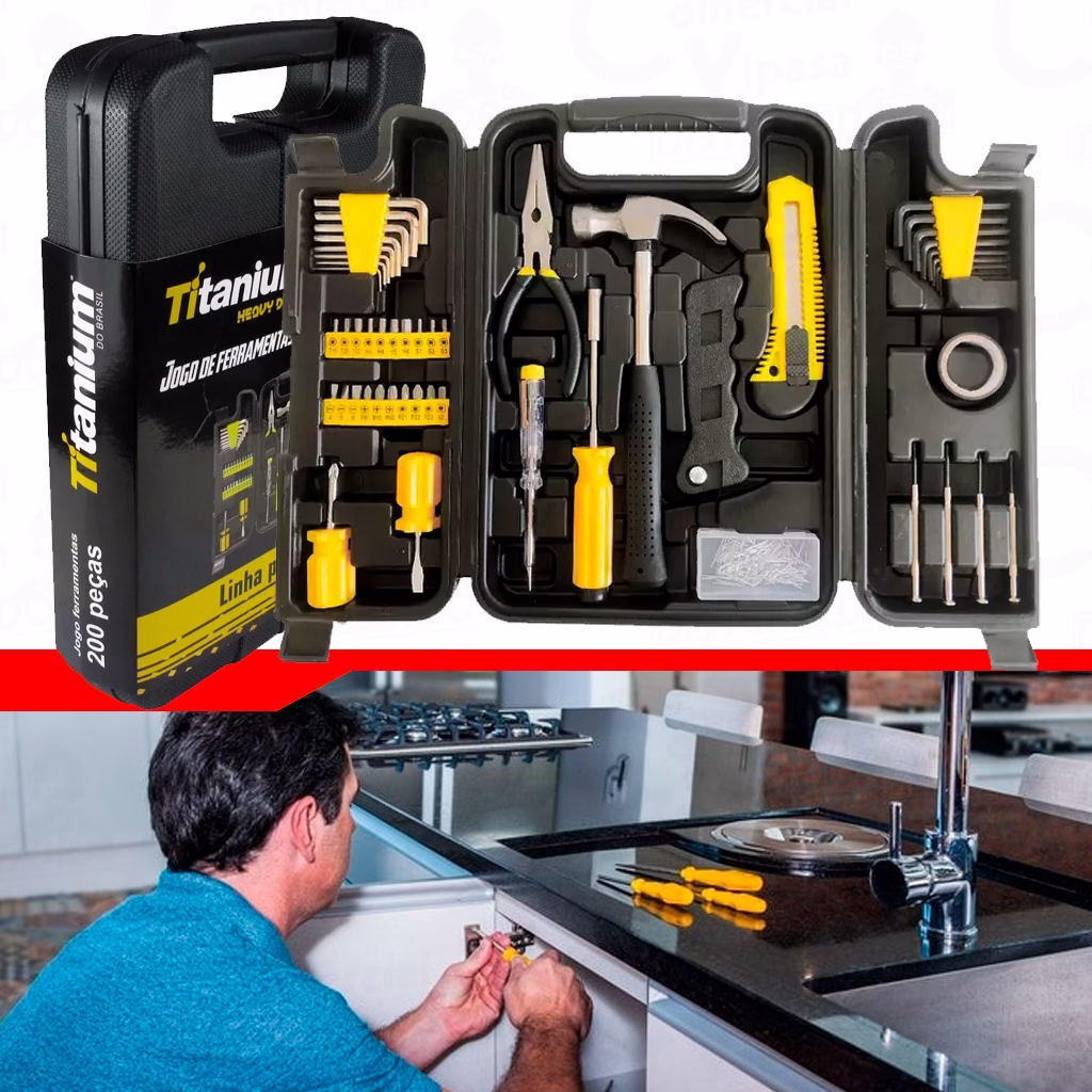 jogo de ferramentas com 200 peças é ideal para diversas aplicações diárias, além de ser extremamente útil para trabalhos profissionais ou hobby, seja na oficina, ou na própria residência. Composto por ferramentas robustas e com alta qualidade, sendo fabricadas em aço carbono especial, garantindo maior vida útil e resistência. Acompanha maleta de plástico com design resistente, oferecendo proteção às ferramentas e facilidade de transporte.