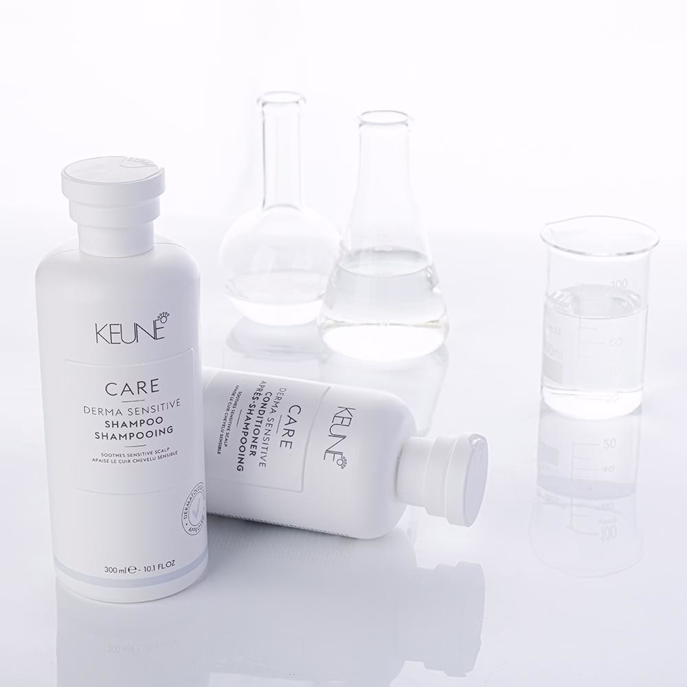 Keune Care Derma Sensitive Conditioner é ideal para um cuidado intensivo no couro cabeludo e garante fios leves e brilhantes.
