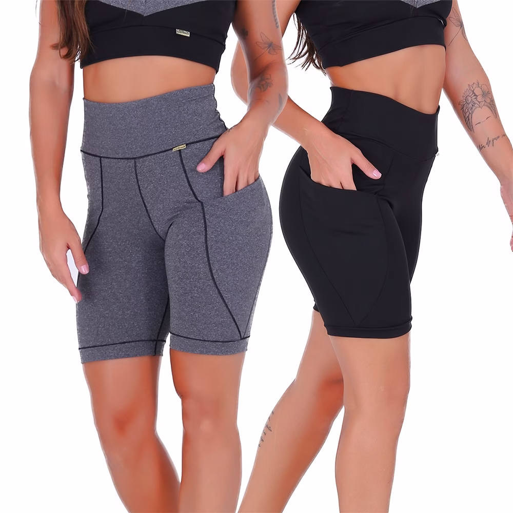 KIT 2 Bermudas Fitness Short Legging com Bolso Play