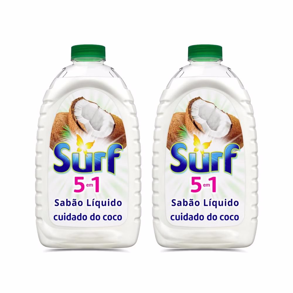 Kit 2 Lava-Roupas Líquido Surf 5 em 1 Cuidado do Coco 3 LitrosKit 2 Lava-Roupas Líquido Surf 5 em 1 Cuidado do Coco 3 Litros