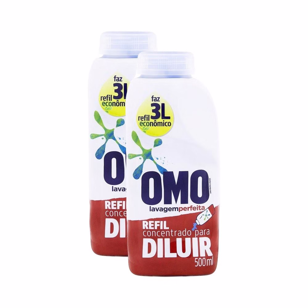 o kit contém: 2 Sabão Liquido Concentrado Omo Lavagem Perfeita Para Diluir com 500ml cada.
