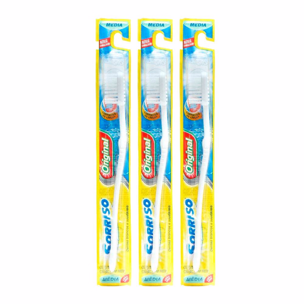 O Kit contém 3 Escova Dental Sorriso Original Média