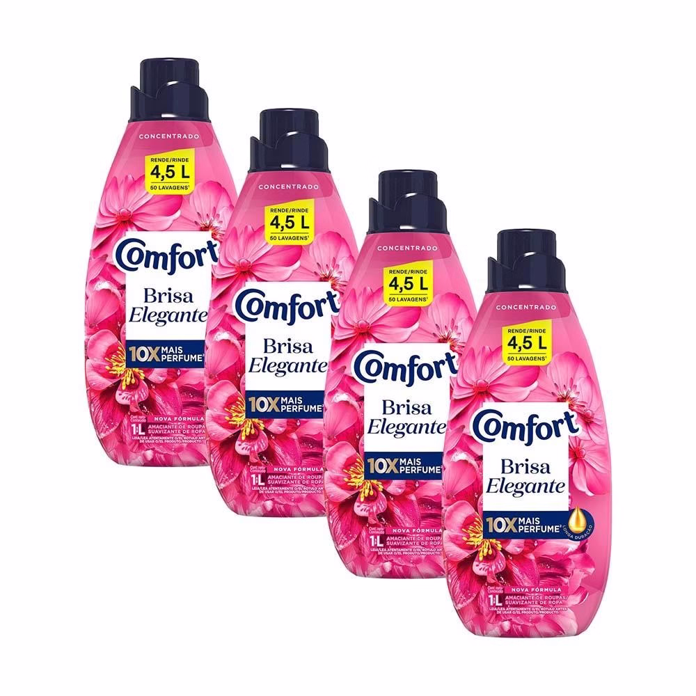 O Kit Contém: 4 Amaciante Concentrado Comfort Brisa Elegante 1L cada.