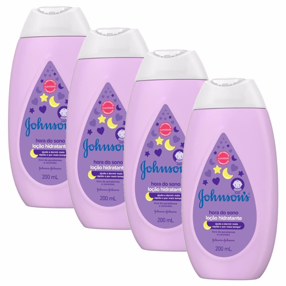 O Hidratante Corporal Hora do Sono JOHNSON’S® Baby 200ml acompanha o desenvolvimento do seu bebê, com uma rotina que, comprovadamente, ajuda o seu bebê a dormir mais rápido e por muito mais tempo. Antes de o bebê dormir, utilize os produtos JOHNSON’S® Baby Hora do Sono: O Sabonete Líquido para banhá-lo em água morna, e depois o óleo ou a Loção Hidratante para massagear sua pele. – Ajuda seu bebê a dormir mais rápido, melhor e por mais horas durante a noite toda (estudos científicos realizados no laboratório da J&J nos EUA. Os resultados foram obtidos com base na rotina de banho e pós-banho do bebê); – Dermatologicamente testado; – Hipoalergênico (este produto foi formulado de maneira a minimizar possível surgimento de alergia).