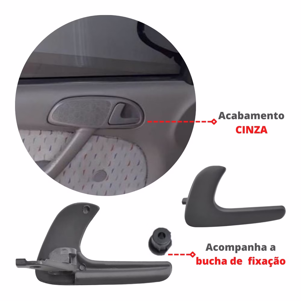 CONTEÚDO DA EMBALAGEM:Kit com 4 Maçanetas Internas Dianteira teiras e Traseiras – Cinza – Metálicas – Gol e Parati G2 G3
