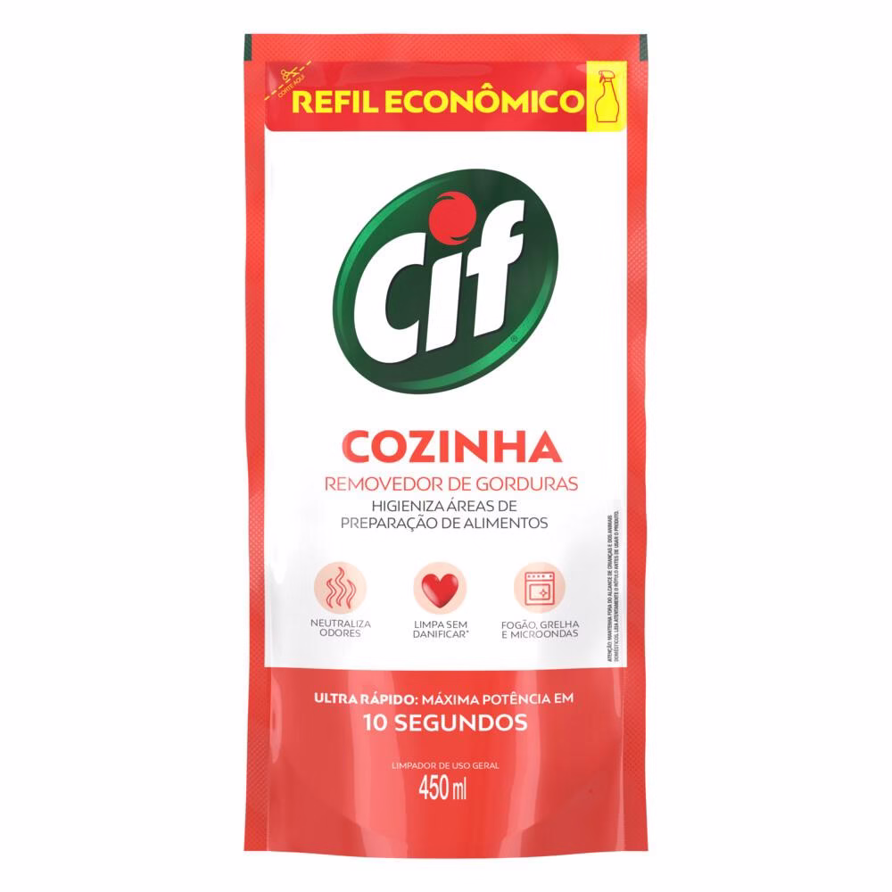 Kit 4 Refis Limpador CIF Ultra Rápido Desengordurante 450ml O Limpador Cif Ultra Rápido Tira Limo contém cloro em sua composição, sendo perfeito para desinfetar e remover as manchas de fungos e bactérias dos pisos e azulejos. Cif Ultra Rápido Tira Limo é o limpador indispensável para limpeza profunda da sua casa! * Kit Contém: 4 Refis Limpador CIF Ultra Rápido Desengordurante 450ml cada * Compre produtos Cif.