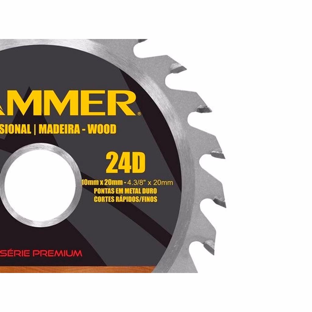 O Disco de serra para madeira com 24 dentes da Hammer possui é ideal para cortes de madeira e derivados