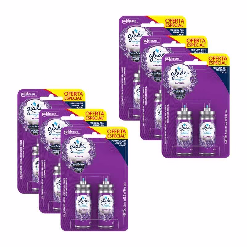 Kit 6 Refil Odorizador Glade Toque de Frescor Lavanda 12ml * Kit Contém: 6 Refís Odorizador de Ambiente Glade Toque de Frescor Lavanda 12ml cada (50% off no Segundo de cada embalagem) * Compre Produtos Glade
