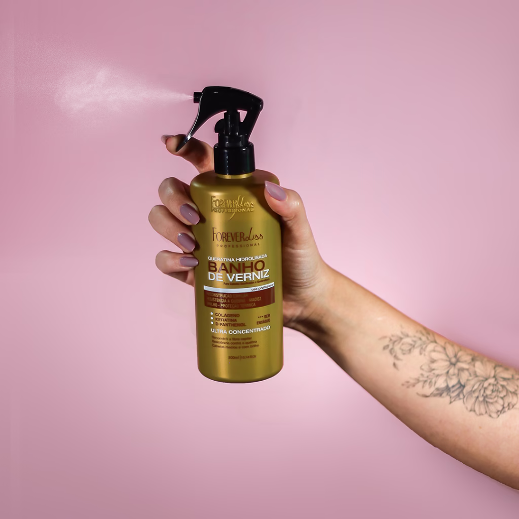 O Kit Banho de Verniz Extremo Profissional Forever Liss proporciona tudo o que o seu cabelo precisa para se recuperar do ressecamento, opacidade e danos causados pelos processos químicos. O Shampoo Banho de Verniz inicia o processo realizando uma limpeza suave nos fios e couro cabeludo, eliminando o excesso de oleosidade enquanto hidrata e nutre os fios. O próximo passo é a Máscara Banho de Verniz, que realiza a reparação da porosidade dos fios, hidratando e nutrindo profundamente. A Queratina Hidrolisada Banho de Verniz Forever Liss fortalece os fios e melhora a elasticidade, prevenindo a quebra dos fios e o surgimento do frizz. Antes de finalizar o penteado, o Leave-in Banho de Verniz entra para desembaraçar os cabelos e selar as cutículas, mantendo a hidratação e o brilho por muito mais tempo, além de auxiliar também no alinhamento dos fios e redução do frizz e protege os seus cabelos até a temperatura de 200ºC.