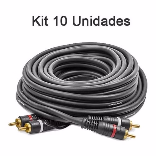 Kit 10 Cabos RCA 5 Metros para Som Automotivo Ouro Permak