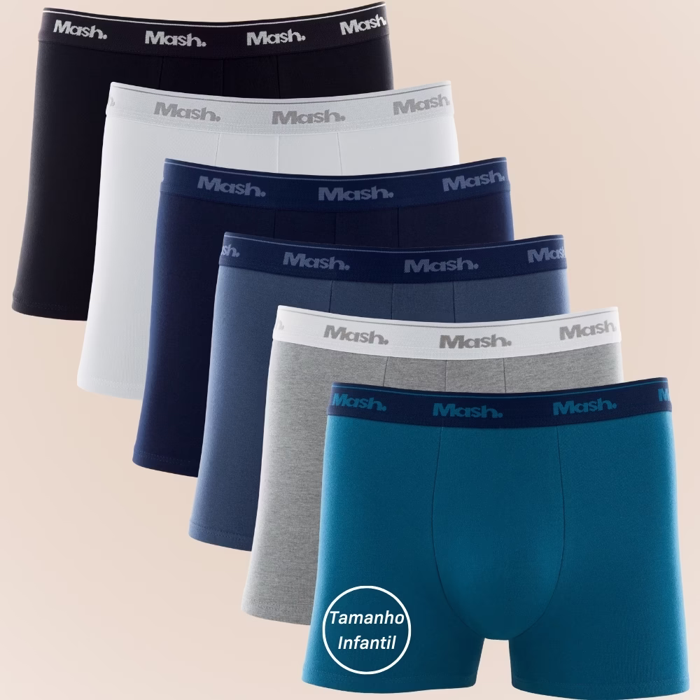 Kit Com 6 Cuecas Boxer Box Básica Kids Mash Infantil Juvenil Em AlgodãoKit Com 6 Cuecas Boxer Box Básica Kids Mash Infantil Juvenil Em Algodão