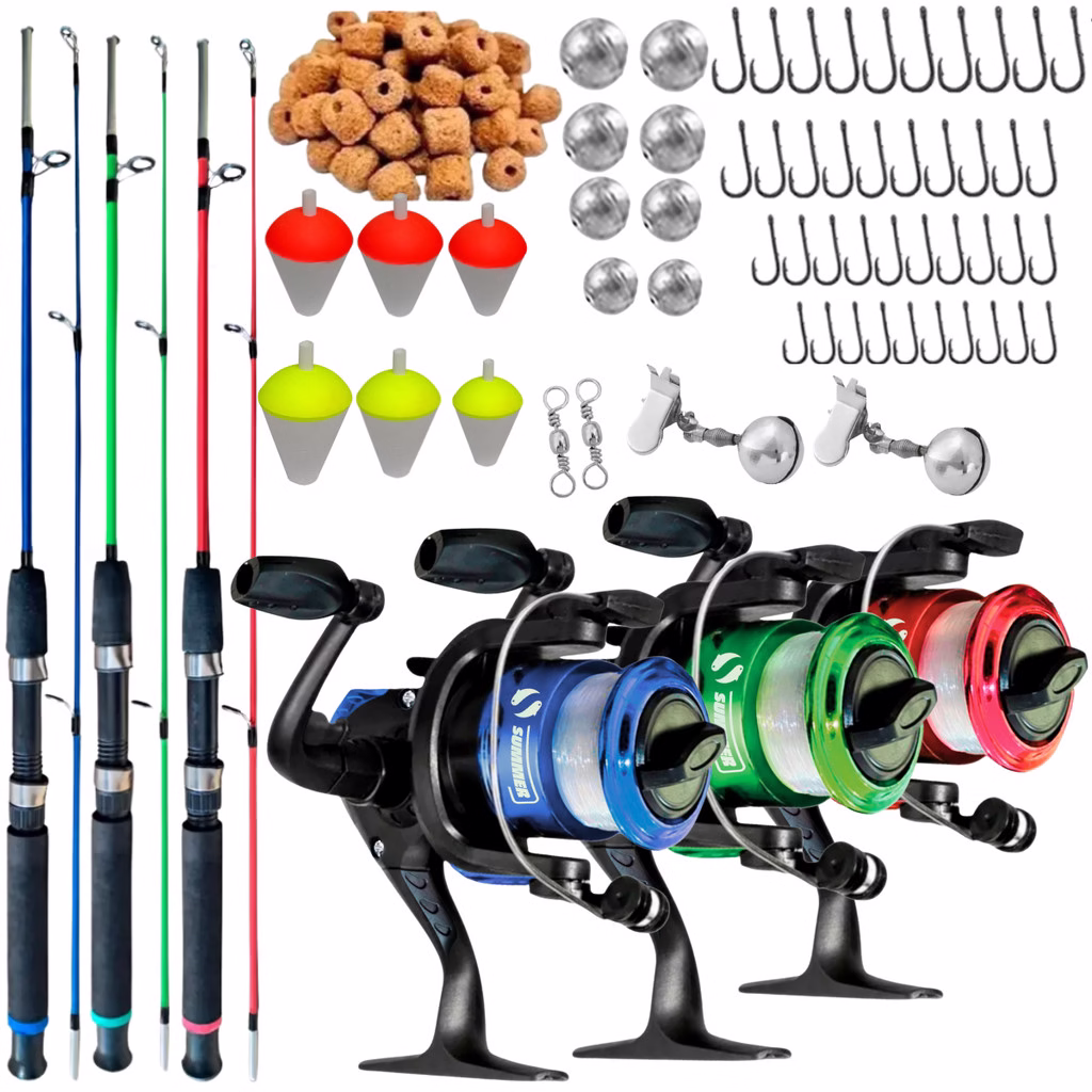Kit De Pesca Completo Barato 3 Vara 3 Molinete E Acessórios