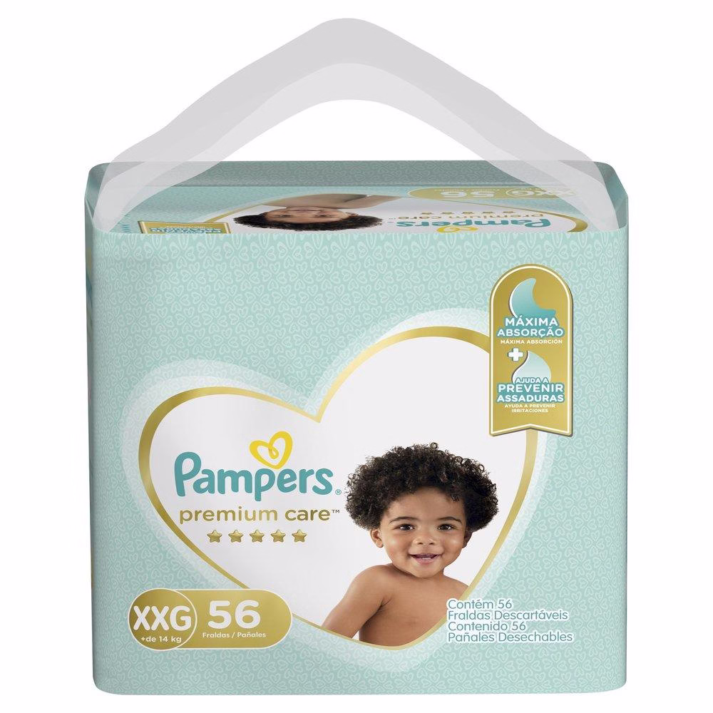 O Kit contém: 2 pacotes de Fralda Pampers Premium Care Jumbo Tamanho XXG com 56 unidades cada. Pampers Premium Care , nossa proteção mais suave para a sua pele. É suave como o algodão° e ultra respirável. Também tem canais de ar para uma pele seca e arejada, e uma loção hipoalergênica exclusiva que ajuda a prevenir irritações.
