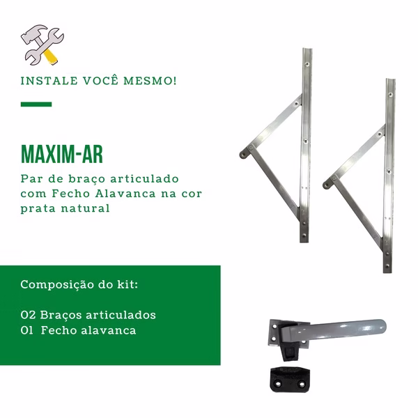 Kit Janela Maxim Ar – Braço 40cm – C/ Fecho – Madeira e Alumínio