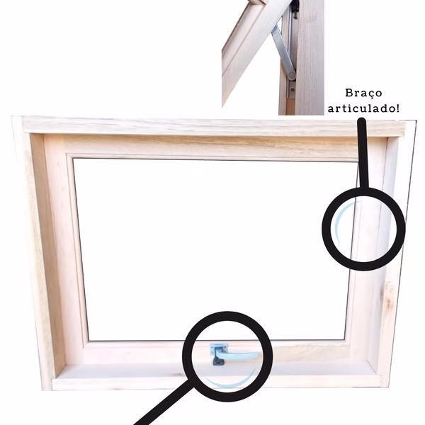 Kit Janela Maxim Ar – Braço 60cm – C/ Fecho – Madeira e Alumínio