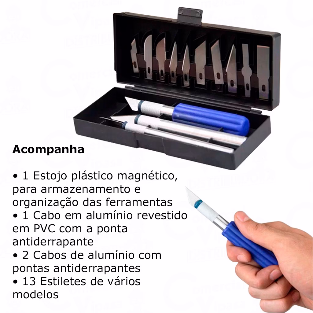 Kit Estilete Precisão 16 Pçs Estojo Magnético Tipo Bisturi