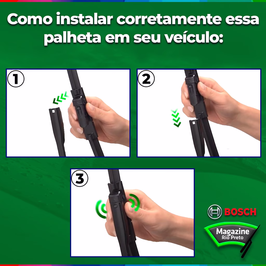 – Nova geração de palheta Bosch aerodinâmica, substitui a palheta convencional nos veículos.