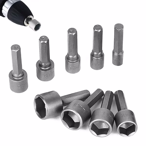 Kit Jogo Pontas Bits Soquete Canhão Para Parafusadeira Chave Catraca Manual 9 Peças Sextavado Top