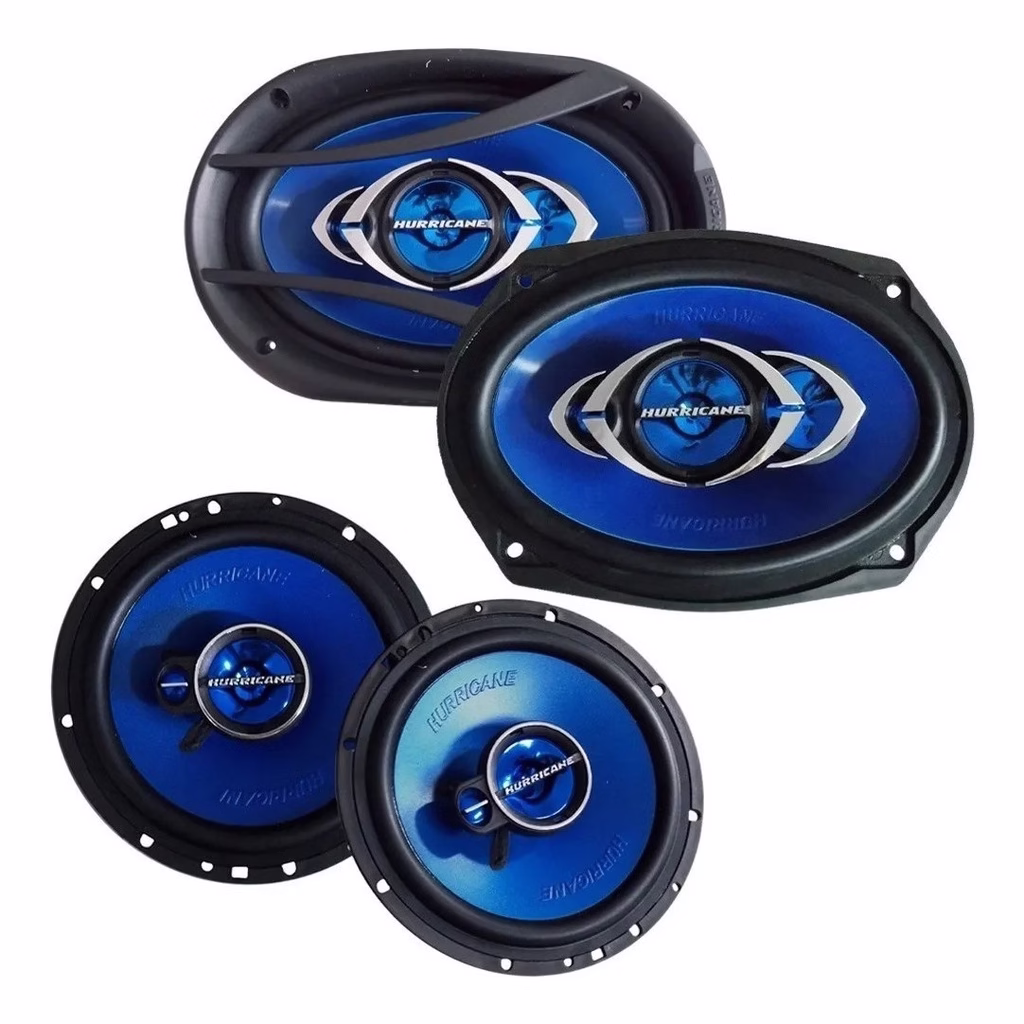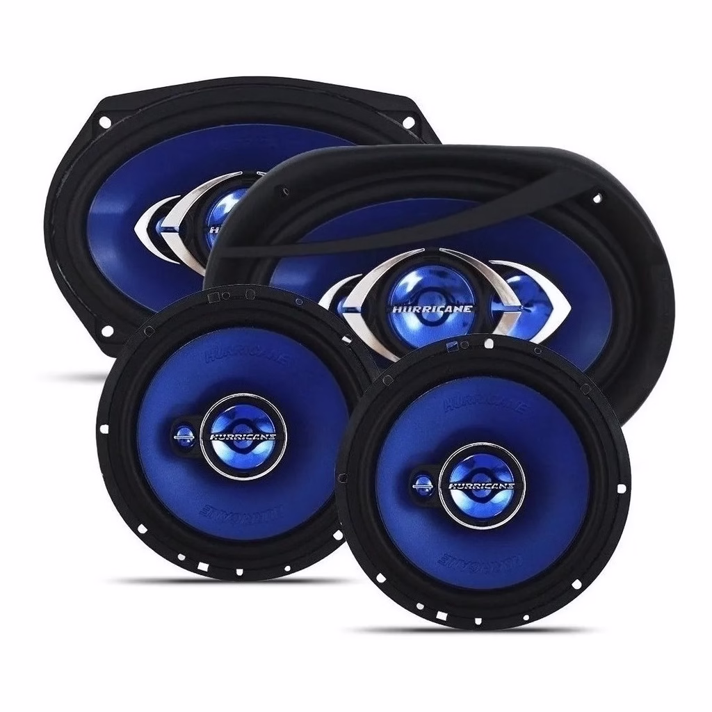 Kit Alto Falantes Quadriaxial Hurricane 6 e 6×9 Polegadas 310W RMS 4 Ohms Bobina Simples Preto e Azul