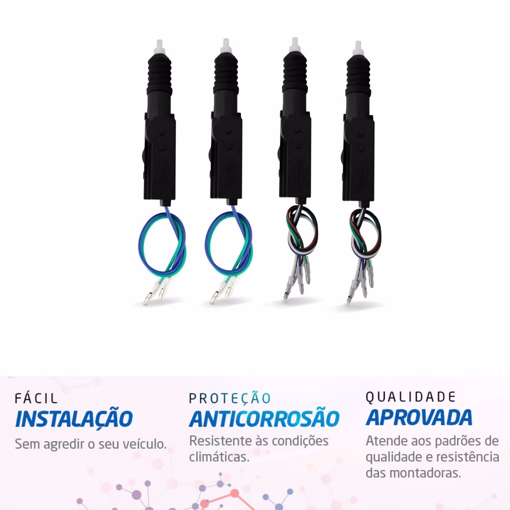 O kit de trava elétrica ficará perfeito para as 4 portas do seu automóvel, garantindo o travamento e destravamento das portas com rapidez e agilidade, usando um sistema simples de fácil instalação.