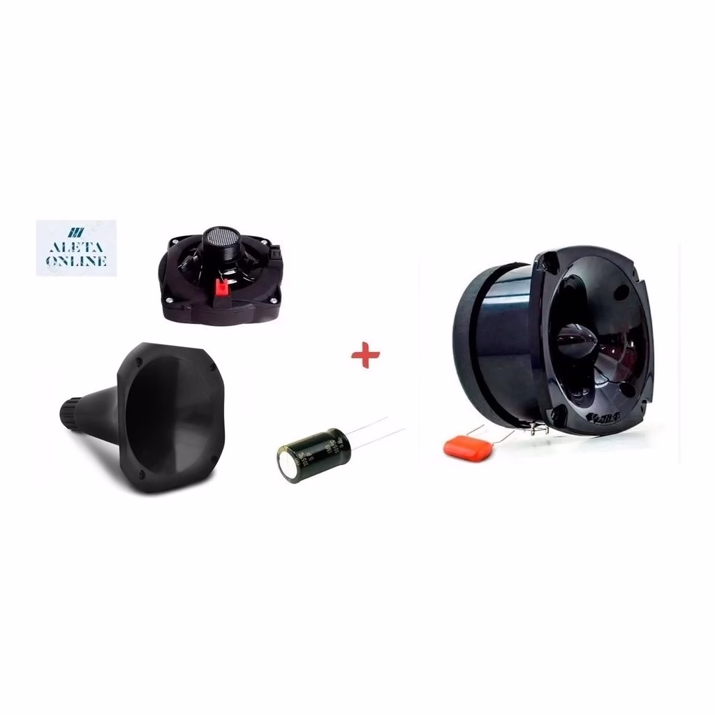 KIT UNLIKE COM DRIVE “UND 400+CORNETA CURTA+CAPACITOR”+ “SUPER TWEETER UNT 400 COM CAPACITOR”