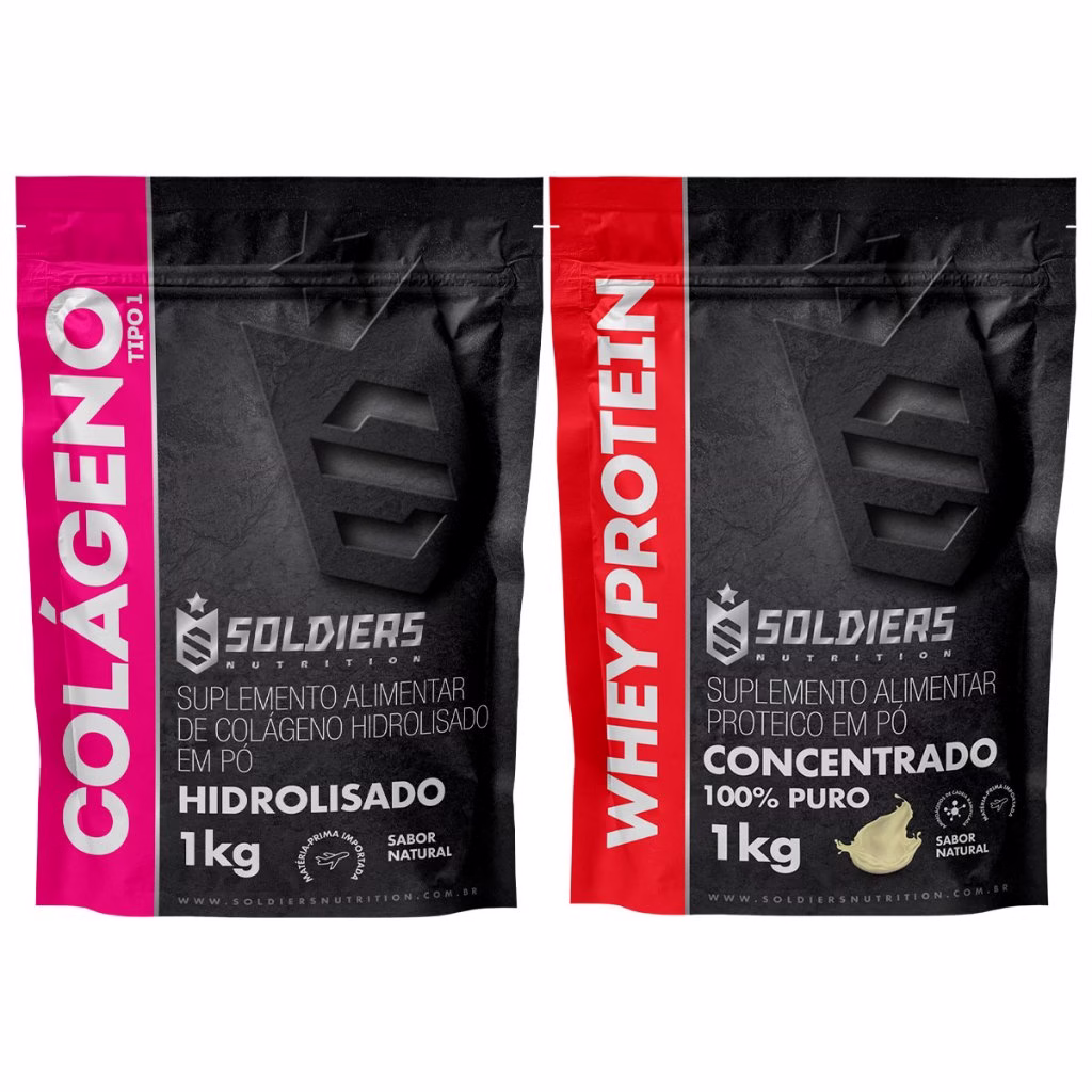 Kit: Whey Protein Concentrado 1Kg + Colágeno Tipo 1 Hidrolisado 1Kg – 100% Importado – Soldiers Nutrition