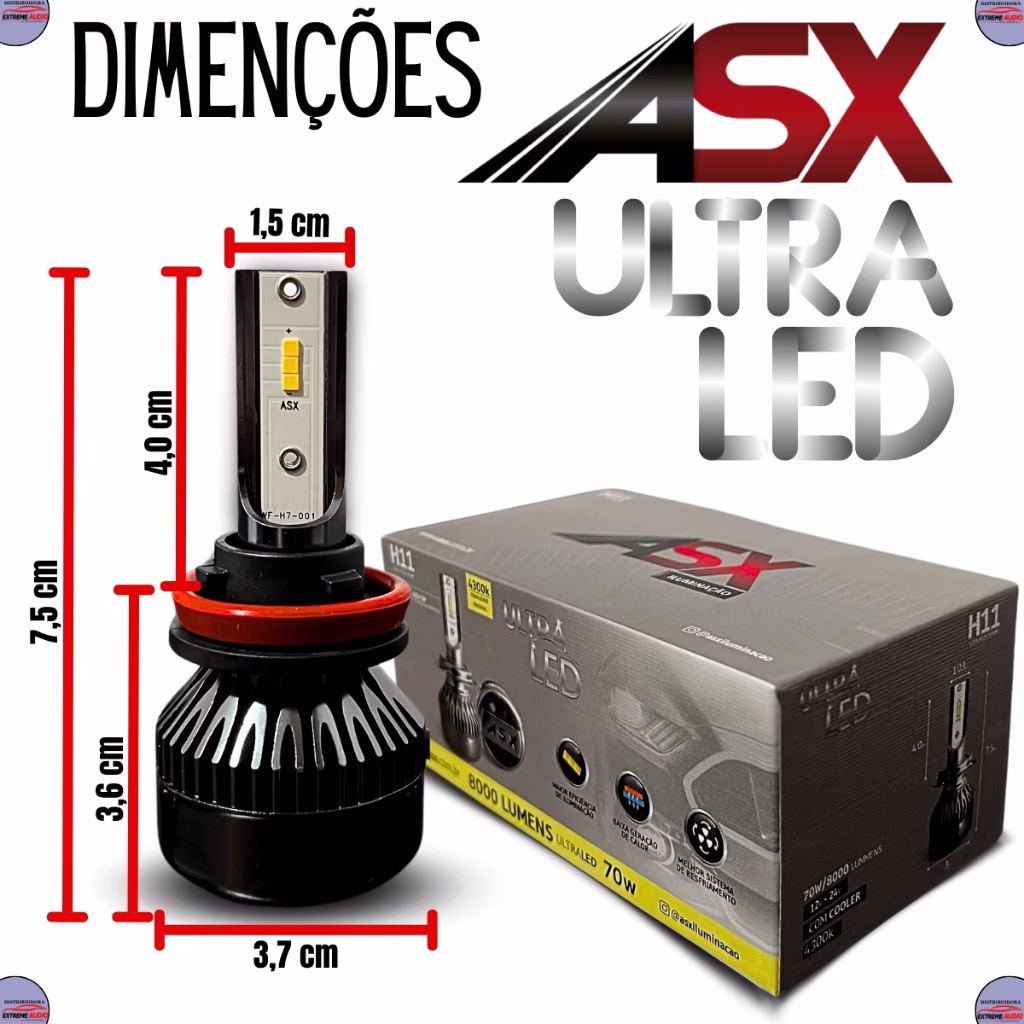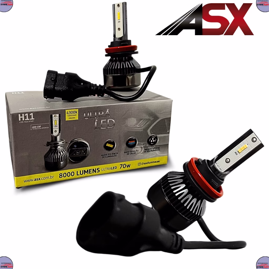 Ultra LED ASX Modelo H11 CSP 70W 4300k 8000 Lumens 12 24V Com Cooler
