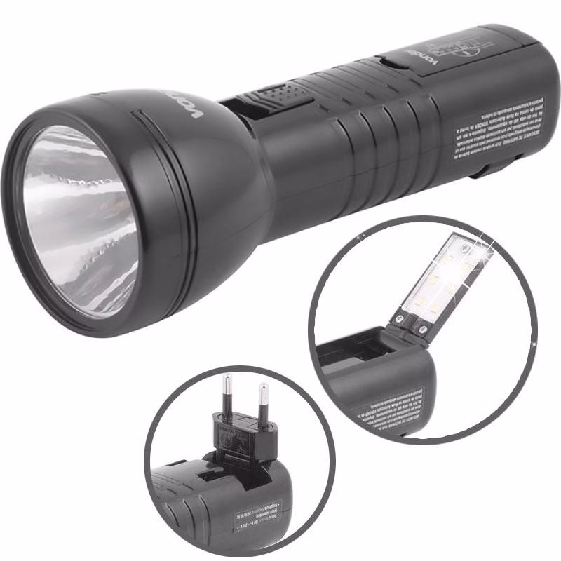Lanterna Recarregável LED com 6 Leds Luminária Bivolt LRV 180 VONDERLanterna recarregável com 1 led + 6 leds, bivolt, LRV 180 VONDERCódigo de Fábrica: 80.75.180.000Indicada para iluminação em geral.Utilizada em camping, residências, entre outros.Ciclos de carga: 300 ciclosLanterna recarregável com alimentação bivolt automático 100 V~ – 240 V~.Possui 6 leds na aba traseira que podem ser utilizados como luminária de mesa.DETALHES TÉCNICOSQuantidade de LEDs da lanterna:1 led frontal e 6 leds na aba traseiraMaterial da lanterna:Plástico ABSCor da lanterna:PretaDiâmetro da lente da lanterna:57,0 mmComprimento total da lanterna:180 mmTempo de carga:8 hrsAutonomia aproximada:Led frontal: 6h / Leds aba traseira: 5hFluxo luminoso (lúmens):Led frontal: 40 lm / Leds aba traseira: 60 lmAlcance:70 metrosTensão (V):100 V~ – 240 V ~ bivolt automáticoGarantia – E (CDC):Garantia legal: 90 dias* Imagens meramente ilustrativas.