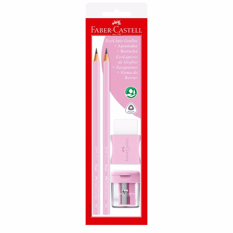 Lápis preto tom pastel Rosa SM/1205PASTELAPR com 2 lápis 1 borracha e 1 apontador – Faber-Castell