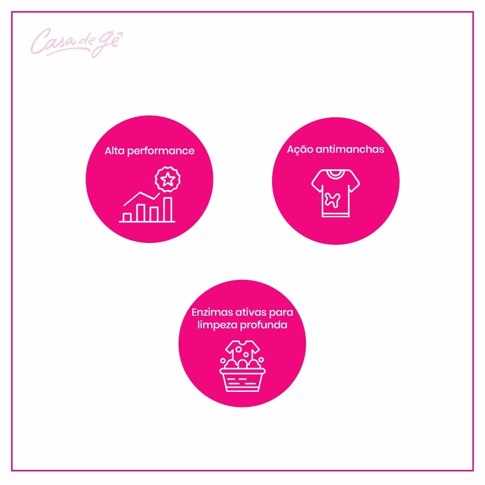 Essa dosagem é indicada para máquina com capacidade de 5kg, nível médio de água. Para as demais, adequar a dosagem.