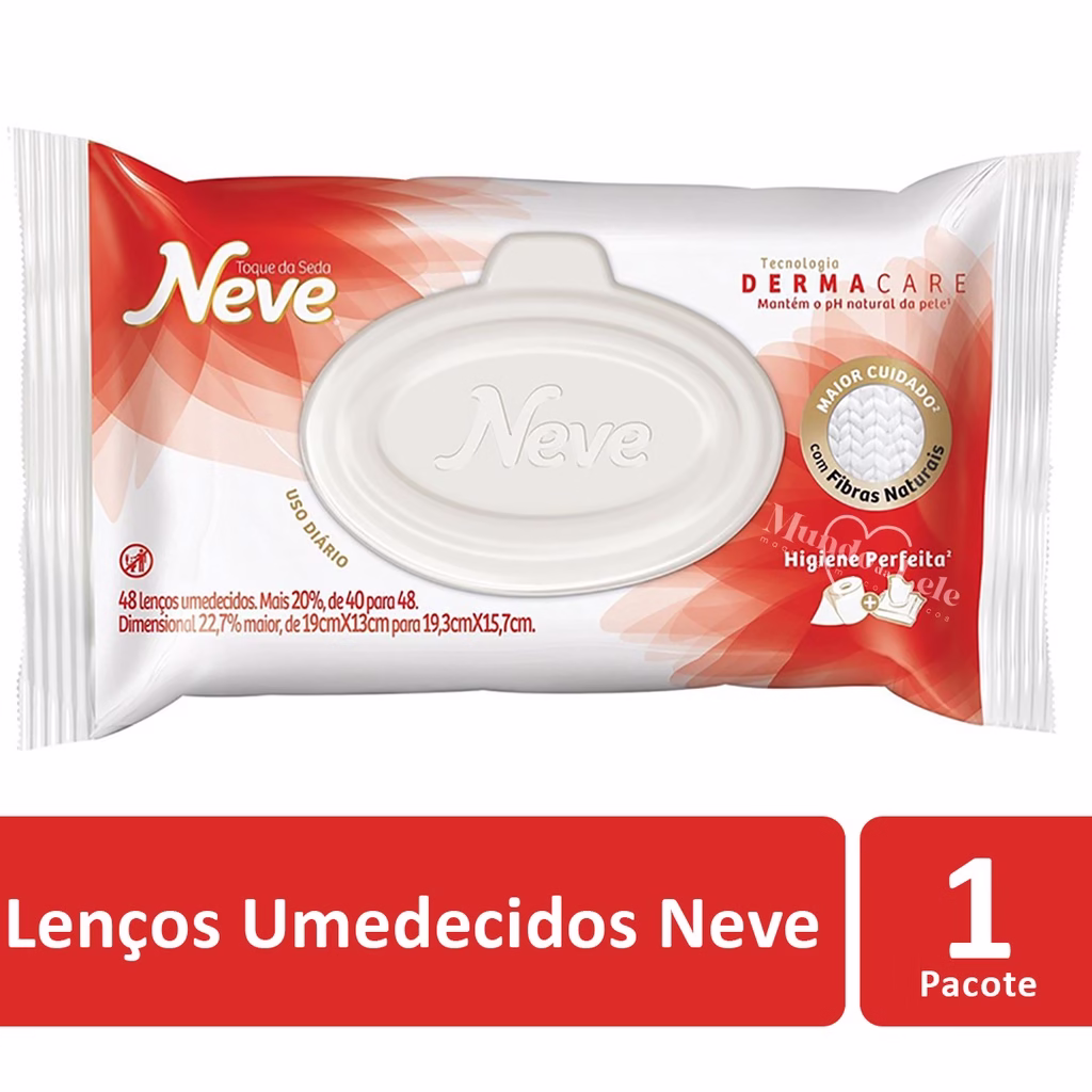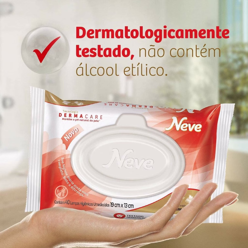 Com tecnologia Dermacare com Pré-Bio Dermatológico, o Lenço Umedecido Neve Toque de Seda possui fragrância suave e proporciona uma limpeza completa, mantendo o pH natural da pele.