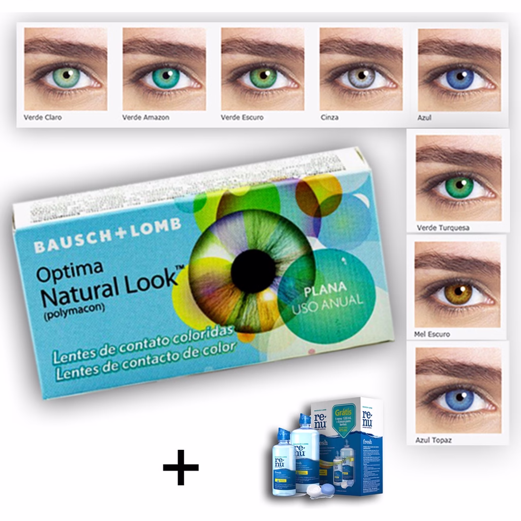 Lente De Contato Colorida Natural Look SEM GRAU – USO ANUAL + RENU FRESH 475ML