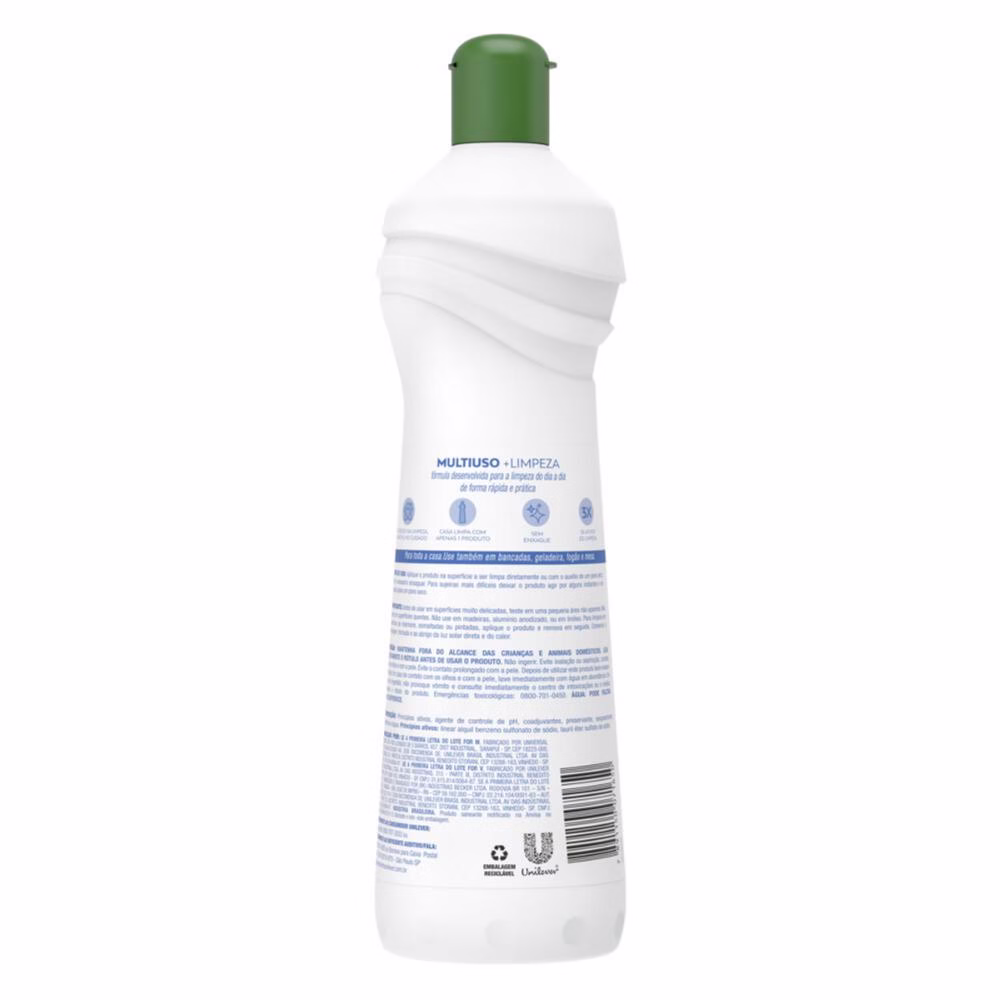 CIF Multiuso + Limpeza tem alto poder de limpeza e deixará casa limpa e bem cuidada, com apenas um produto. Com sua tecnologia, CIF Multiuso + Limpeza cuida da sua casa, pois ele limpa sem danificar. Além disso, CIF Multiuso possui uma fórmula que contem 3X ativos de limpeza, sem necessidade de enxágue após o uso e possui máximo poder de limpeza, proporcionando mais eficiência no seu dia-a-dia.