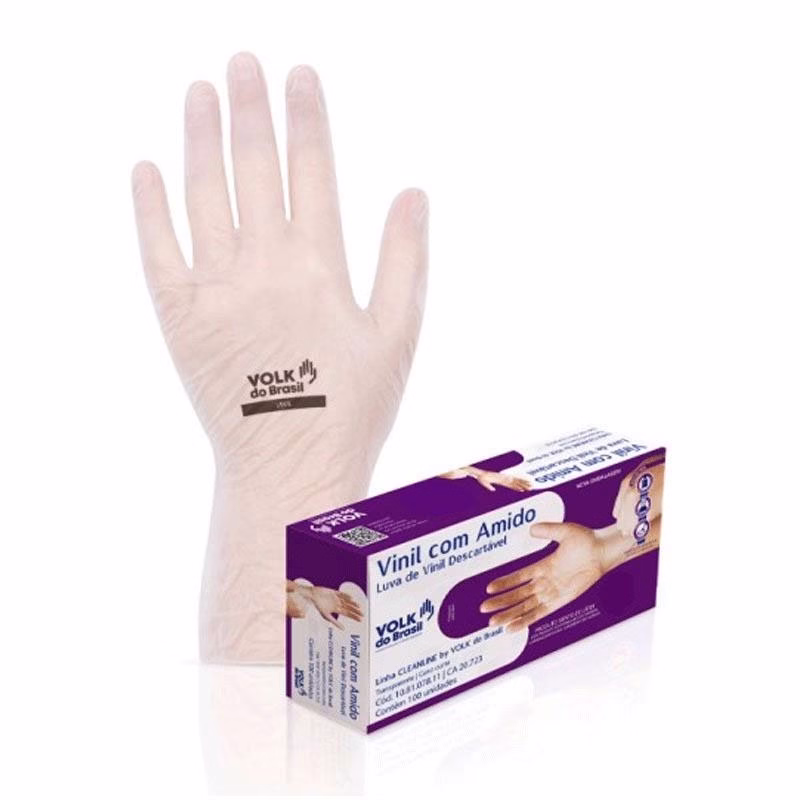 Luva de vinil descartável G com amido com 100 unidades – Volk