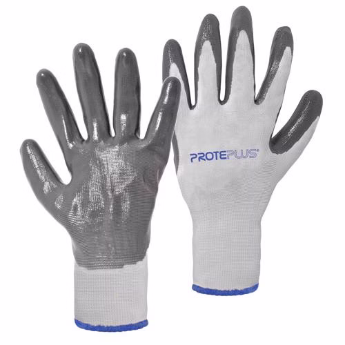 Luva Tricotada em Poliéster com Banho NitrílicoLuva de segurança confeccionada em malha de poliéster.
