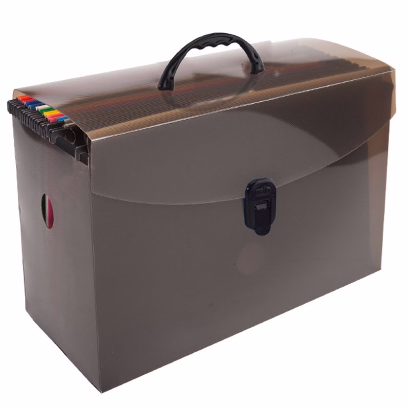 Maleta arquivo Delloplast com 10 pastas suspensas coloridas – Fumê – 0319.I – Dello