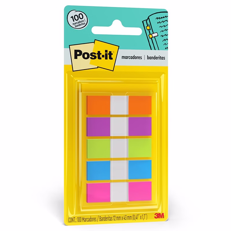 Marcador de página adesivo Post-it Flags 5 cores neon 12x43mm 100 folhas 3MMarcador de página adesivo Post-it Flags 5 cores neon 12x43mm 100 folhas 3M