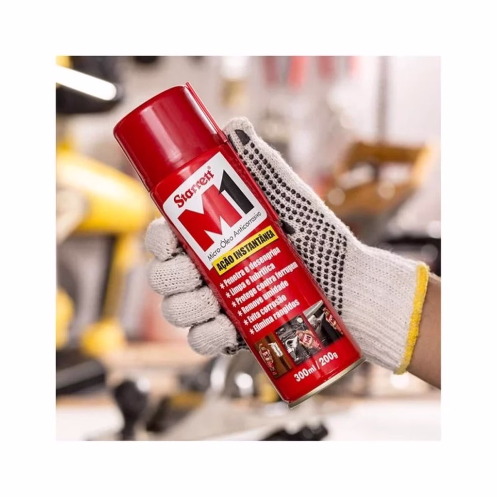 Lubrifica: M1 não contém silicone, e se mantém inalterado mesmo sob temperaturas elevadas. Excelente lubrificante, ideal em qualquer tempo. A grande capacidade de penetração atua rapidamente, liberando porcas emperradas, prisioneiros e partes metálicas;