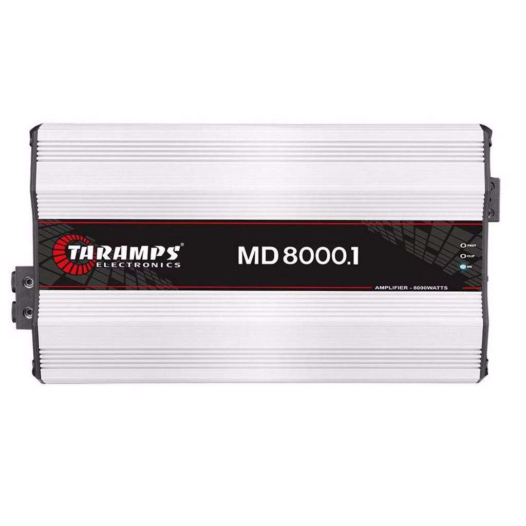 O amplificador MD 8000.1 2 OHMS é desenvolvido com a mais alta tecnologia e desempenho para sistemas de som automotivo. É mono, com potência máxima de 8000Watts RMS com impedância de 2 OHMS, e 1 canal de 8000W RMS. O MD 8000.1 é FULL RANGE tocando todas as frequências na medida certa para você.
